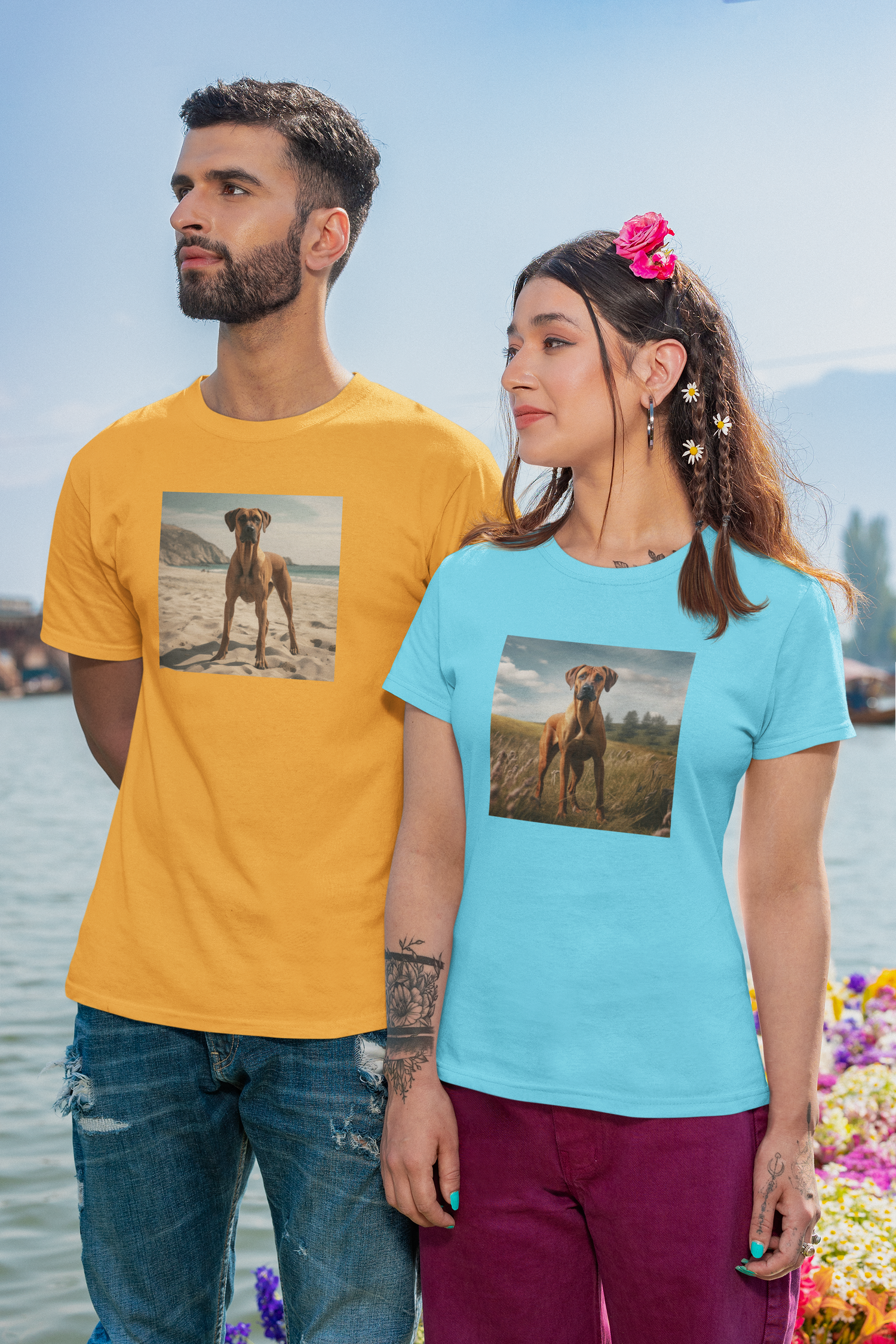 Premium t-shirts and apparel Collection for RSW Rhodesian Ridgeback Soul Whisperer in the Prairie, Sandy Beach and water environment.